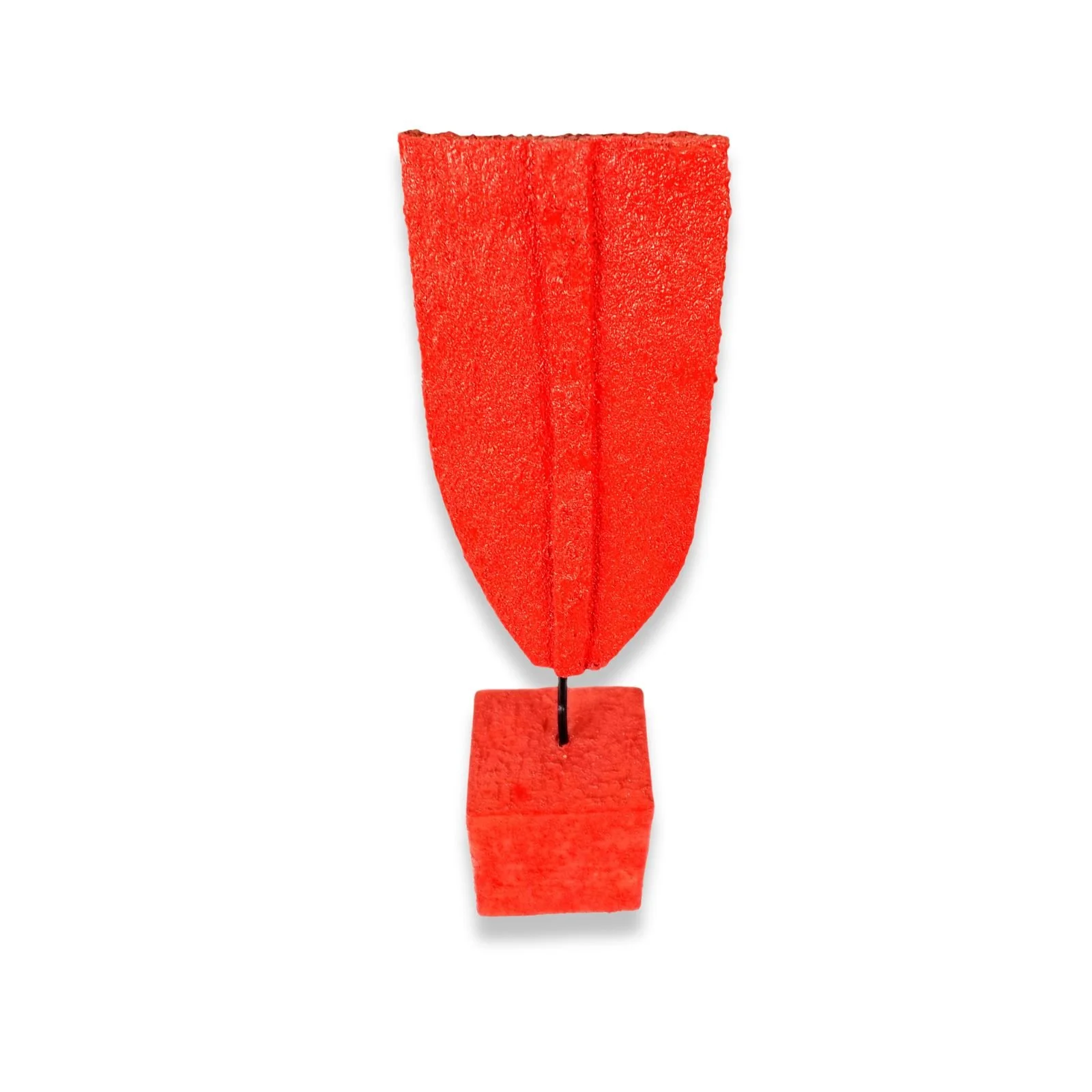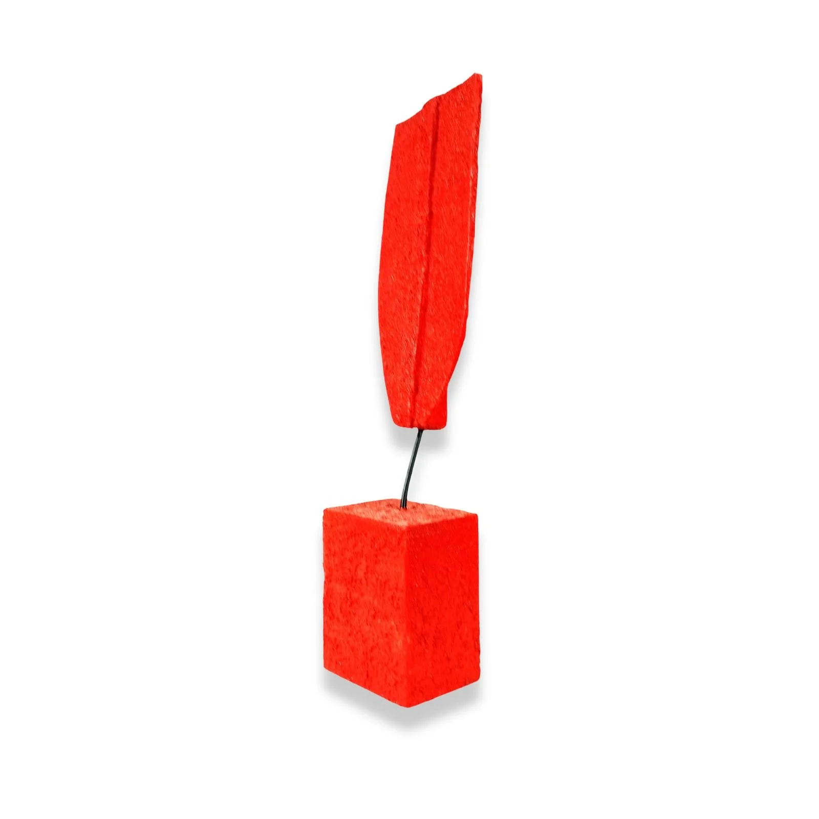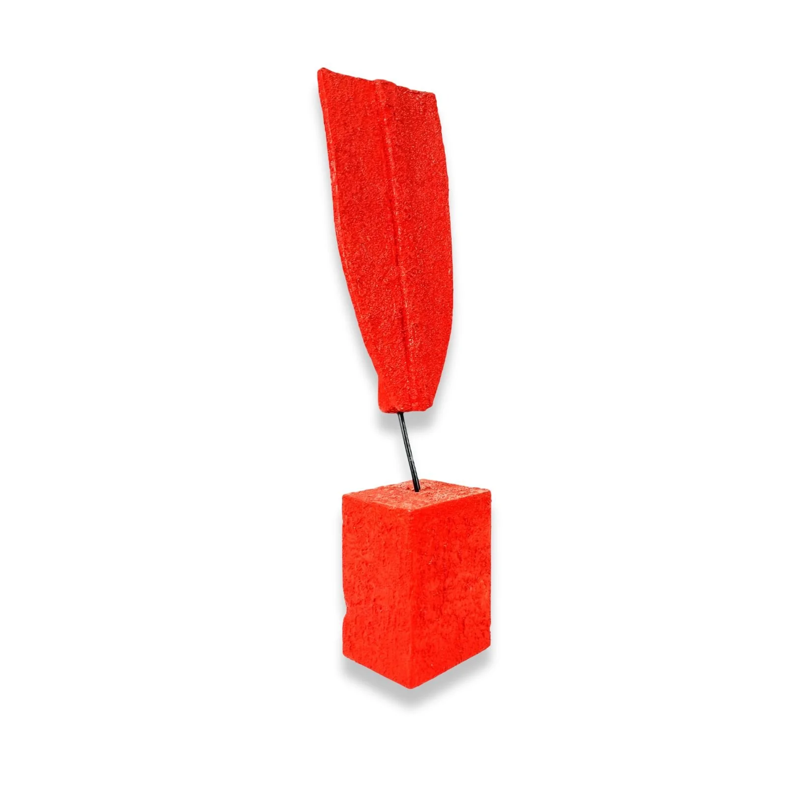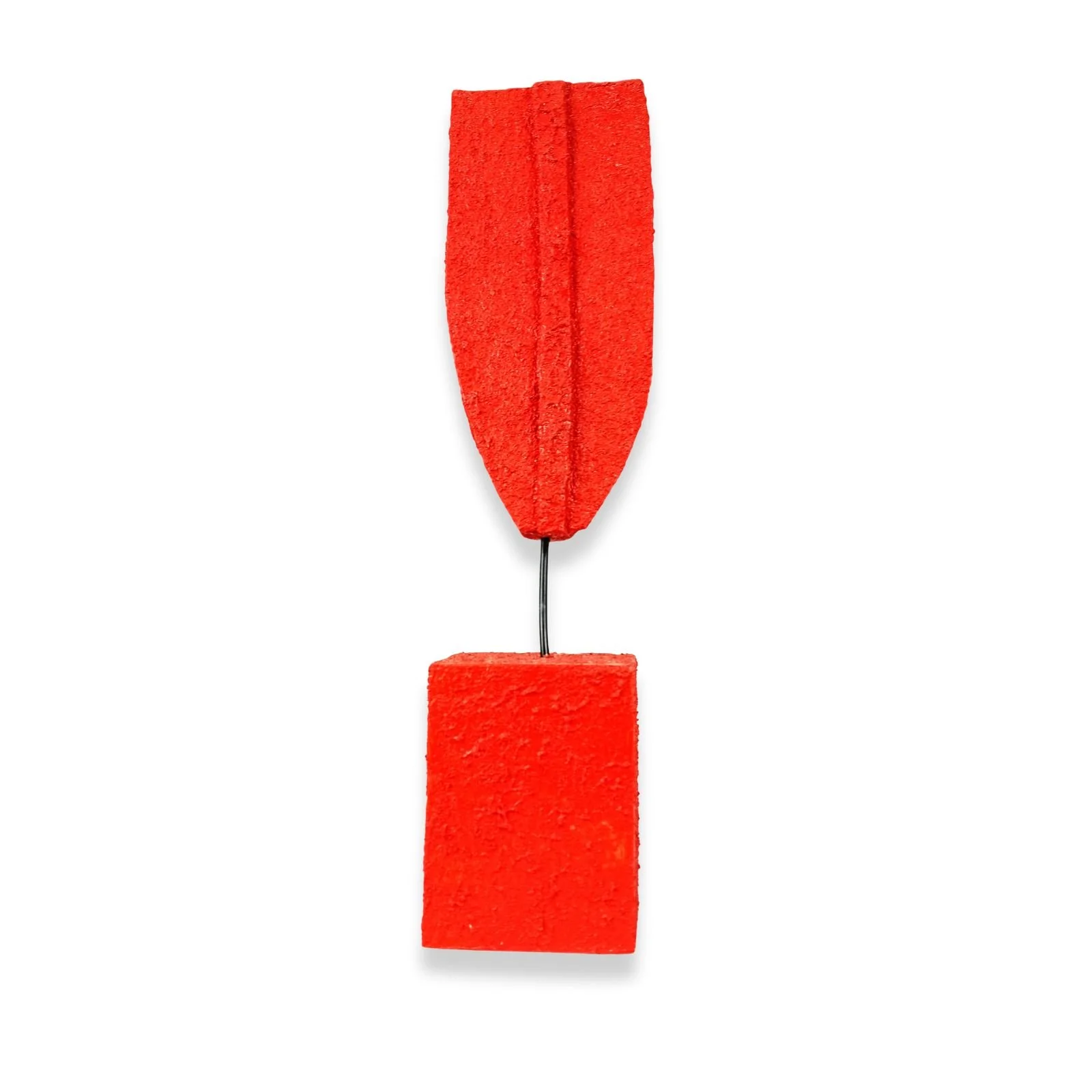 The sculpture 'Red' is an exploration of balance and form, in the Abstract Minimalist Figurativism style. The work, created from wood, 3mm wire, and acrylics, features two simple geometric shapes joined by a delicate rod, creating visual tension and harmony. The vibrant, solid color dominates the composition, transforming the piece into a high-impact focal point. This artwork, while abstract, suggests the essence of a figure through its minimalist pose and structure. A creation from 2025 that has already found its home, now residing in a private collection.